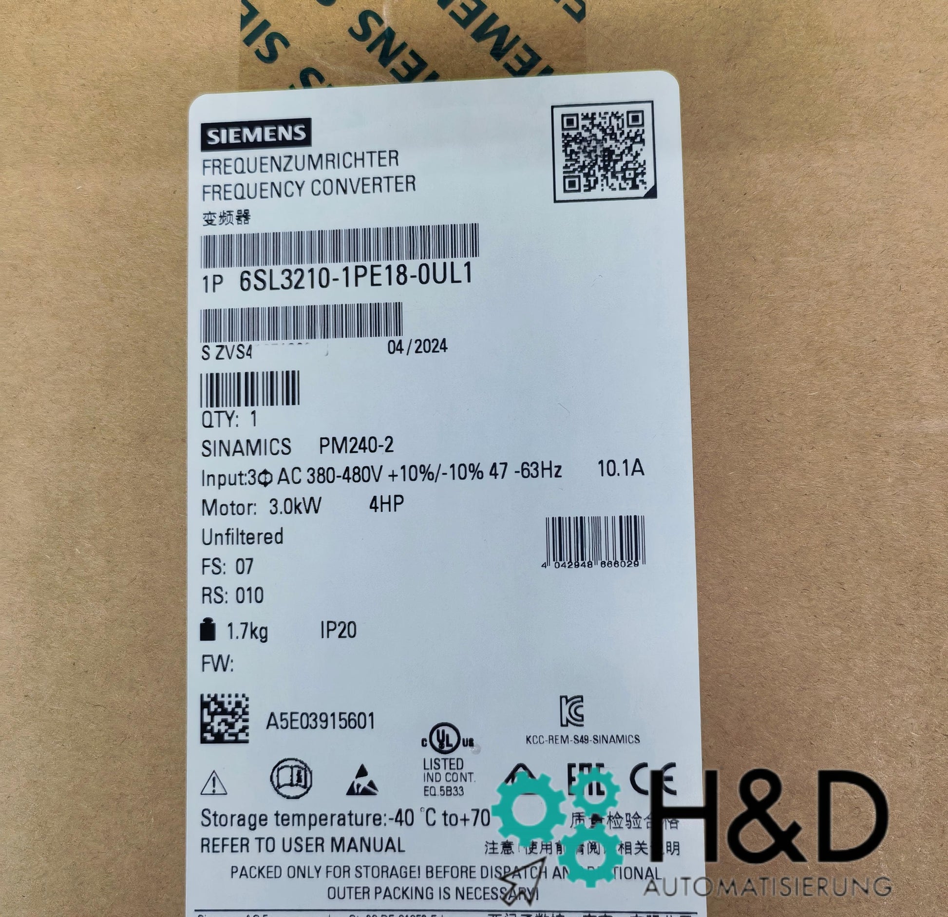 Módulo de potencia SINAMICS PM240-2 sin filtrar con freno integrado Chopper 3AC380-480V+10/-10% 47-63Hz Potencia alta sobrecarga: 2,2kW a 200% 3S, 150% 57S, 100% 240S; Temperatura ambiente -10 a +50°C; Potencia baja sobrecarga: 3kW a 150% 3S, 110% 57S, 100% 240S; Temperatura ambiente -10 a +40°C 196x 73x 165 (AlxAnxPr), FSA grado de protección IP20 sin unidad de control y unidad de operación aprobado desde versión de firmware CU V4.6